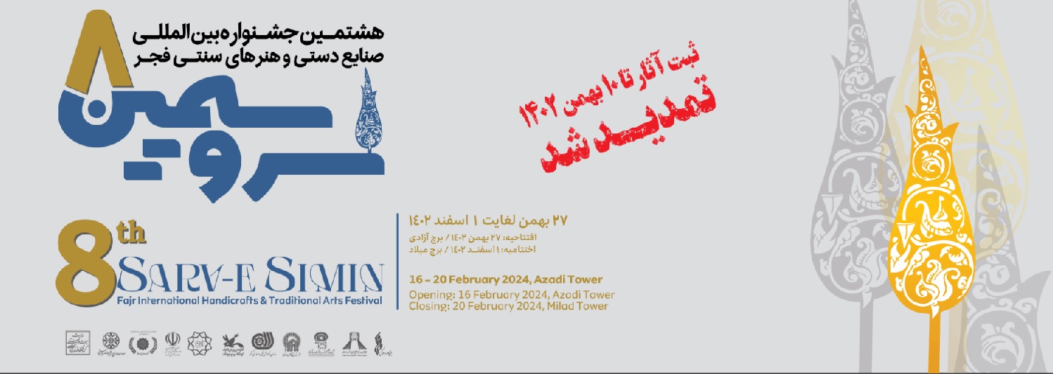 هشتمین جشنواره بین المللی صنایع دستی و هنرهای سنتی فجر تهران 28 بهمن تا 1 اسفند 1402 (برابر با 17 تا 20 فوریه 2024) برگزار میشود.